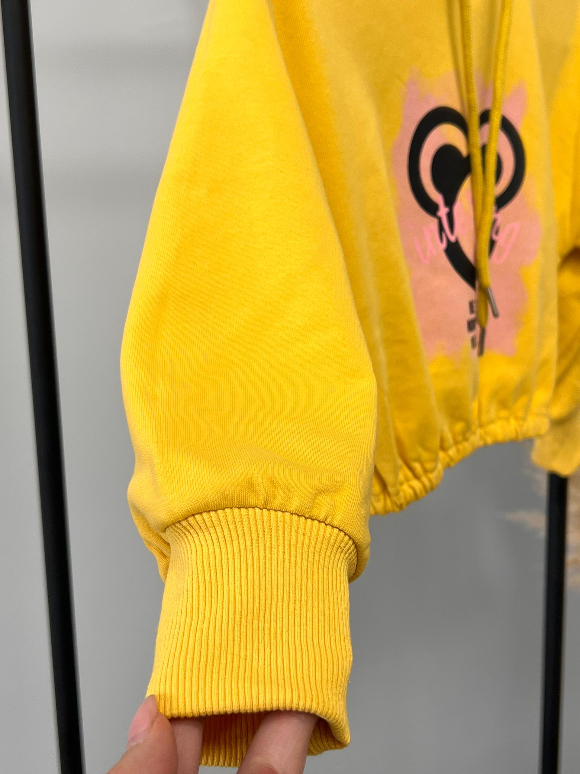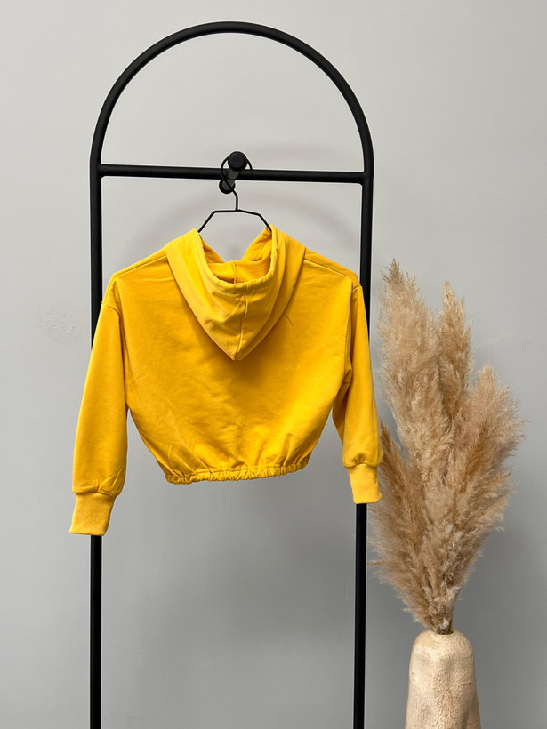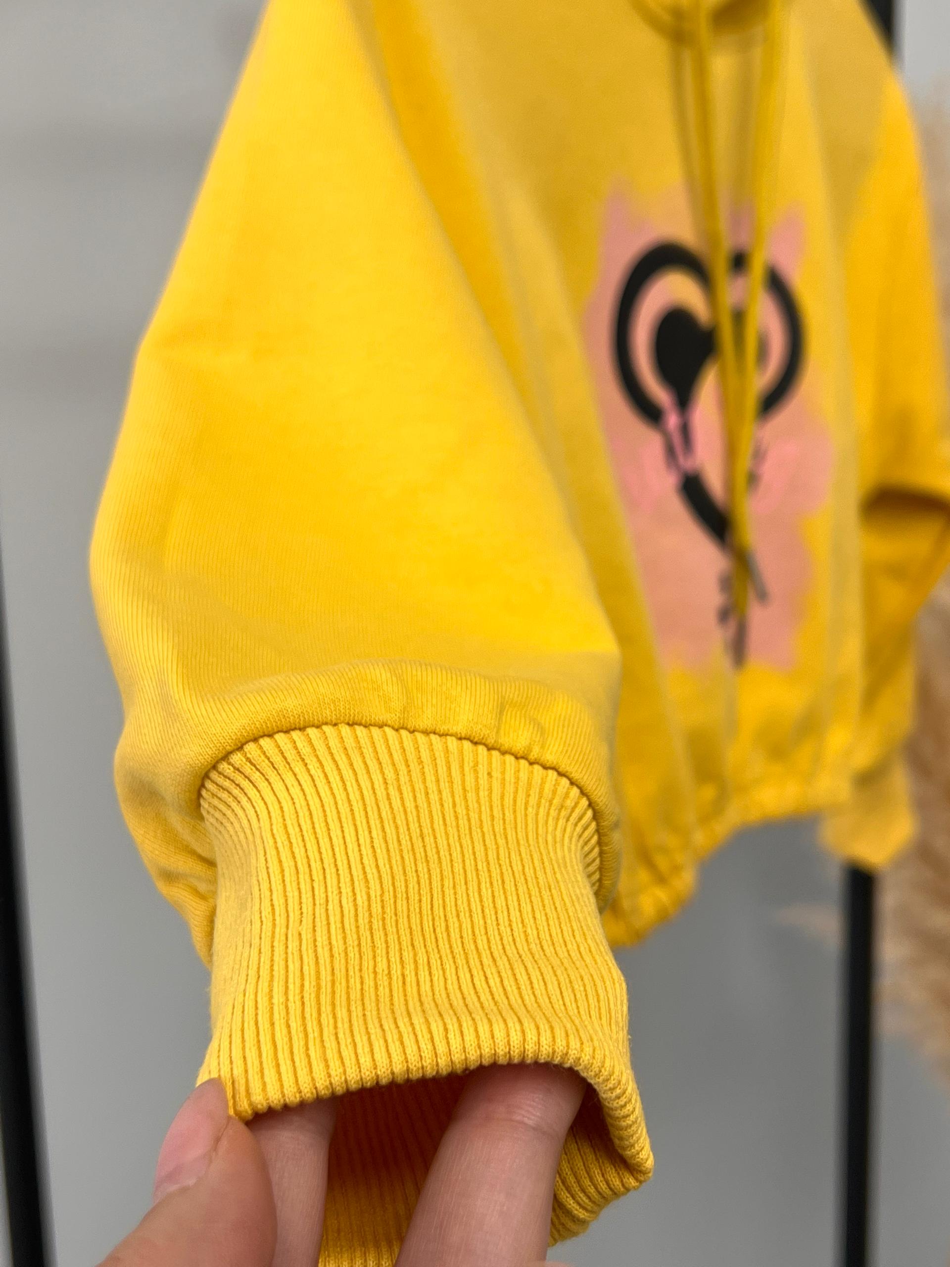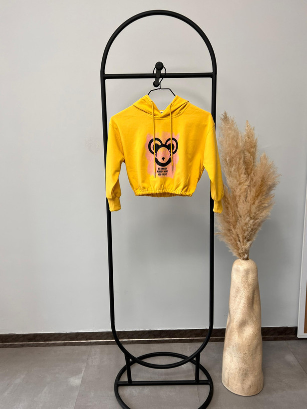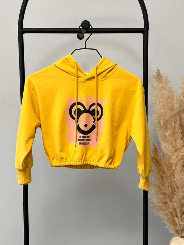 هودی دخترانه کراپ زرد طرح خرس 🐻💛