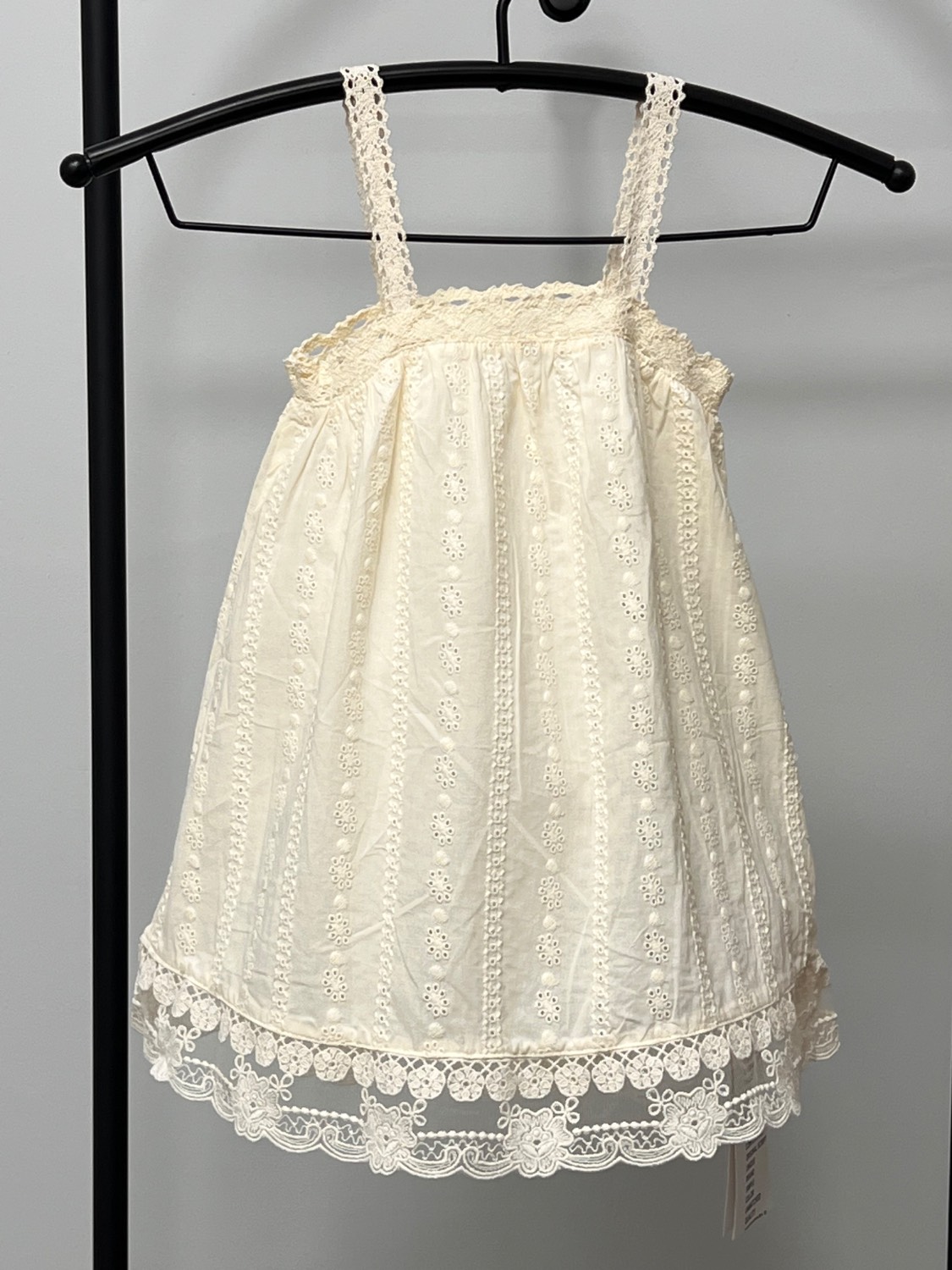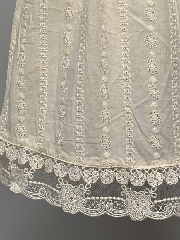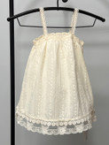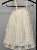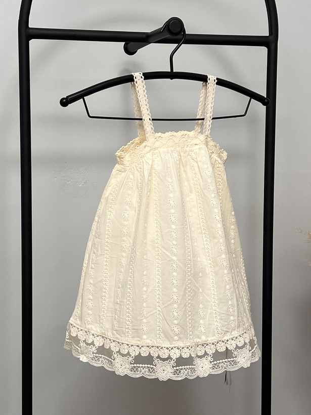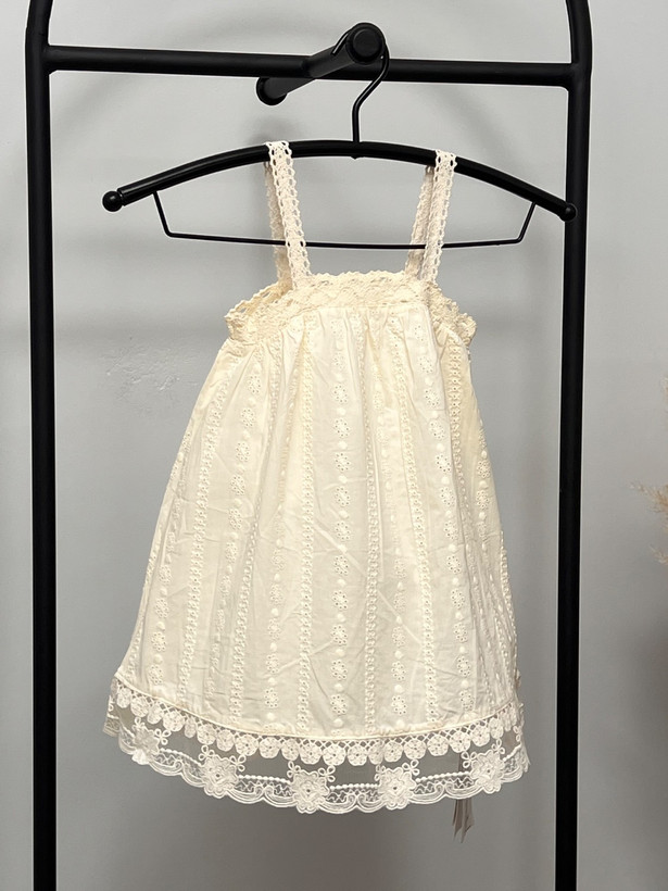 سارافون دخترانه کودک با جنس کاملاً نخی، سبک و خنک، مناسب فصلهای گرم سال. طراحی بنددار با خامه دوزی های ظریف سرتاسری و لبه گیپوری، ظاهری لطیف و دخترانه به لباس داده است. پارچه نرم و تنفسپذیر بوده و برای استفاده روزمره، مهمانیهای خانوادگی و عکاسی کودک انتخابی بسیار مناسب است.