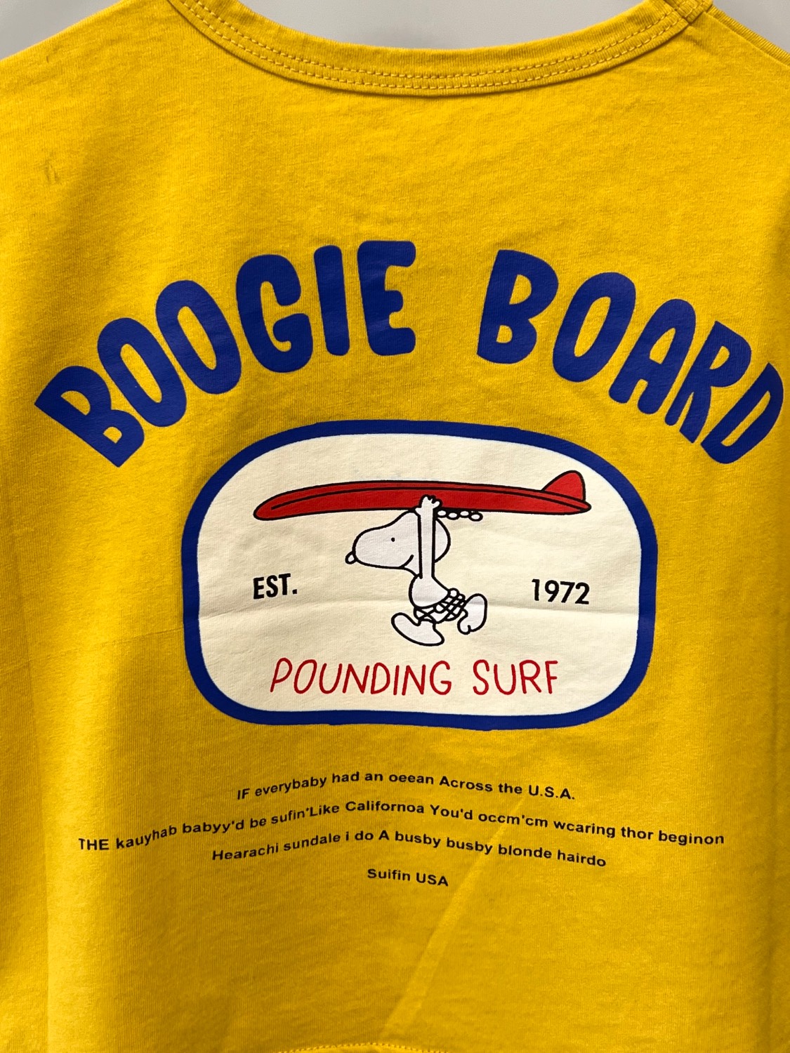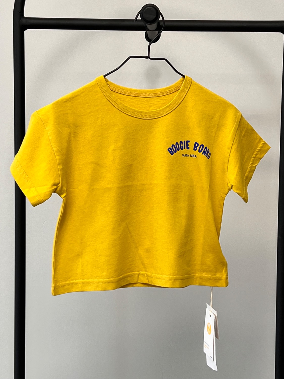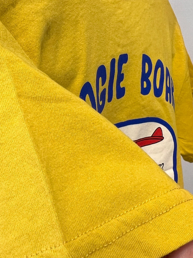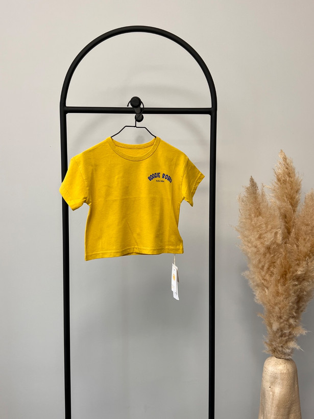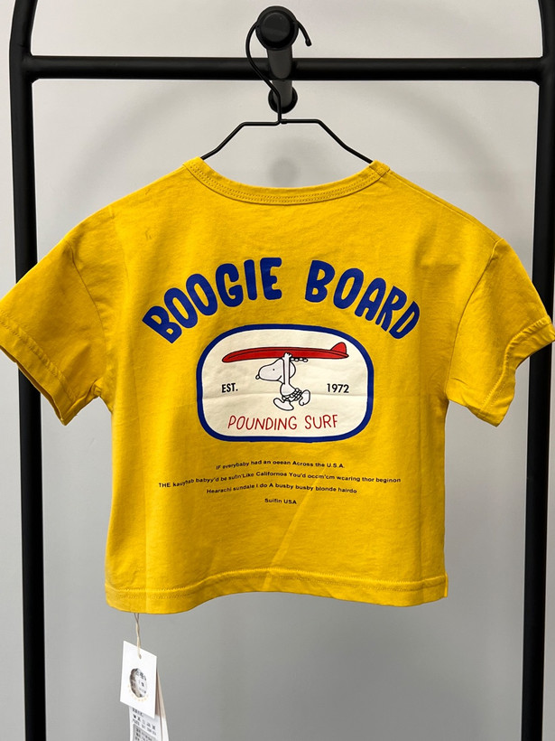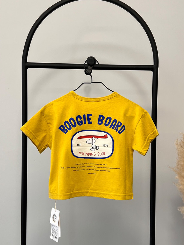 تیشرت کودک با جنس نخی نرم و سبک، انتخابی راحت و مناسب برای استفاده روزمره کودک. رنگ زرد شاد و پرانرژی در کنار چاپ فانتزی BOOGIE BOARD با تم موجسواری، ظاهری شاد و اسپرت به لباس داده و برای استایلهای تابستانی بسیار جذاب است.