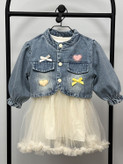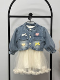 ست بچگانه وارداتی دخترانه – پیراهن تور و کت جین