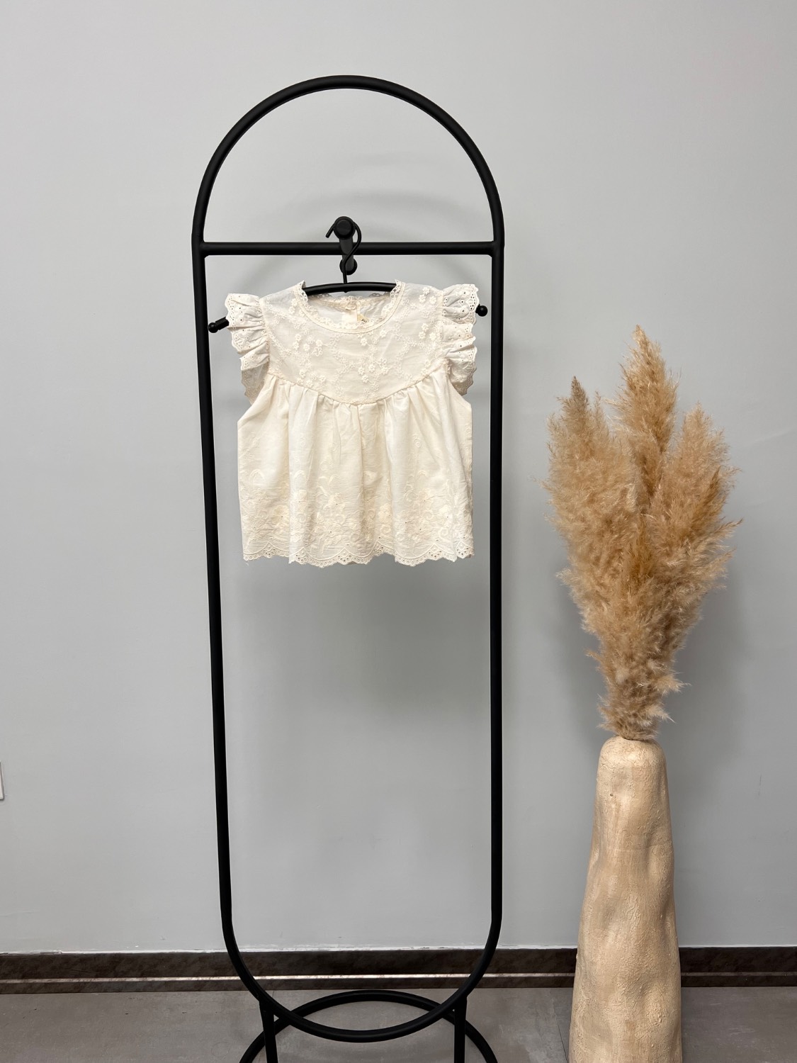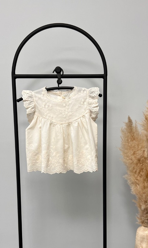 این شومیز دخترانه وارداتی با پارچه نخی لطیف و گلدوزیهای ظریف گلدار طراحی شده که جلوهای کاملاً مجلسی و خاص به لباس میدهد.