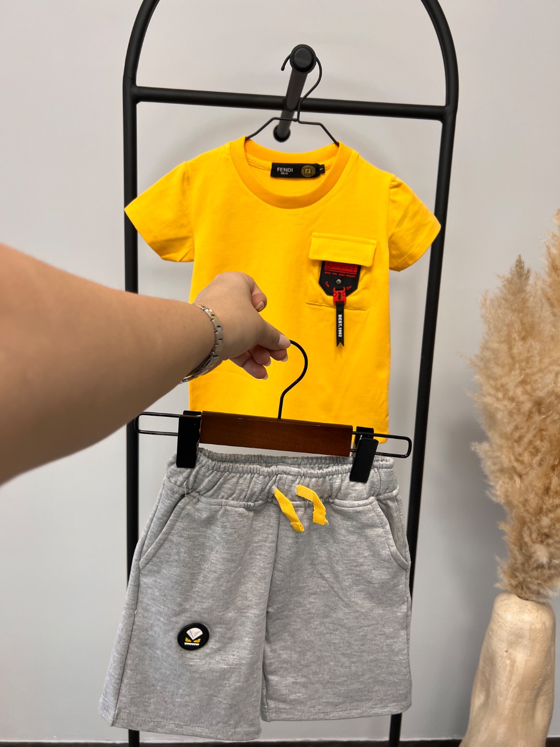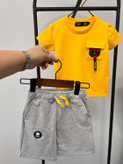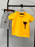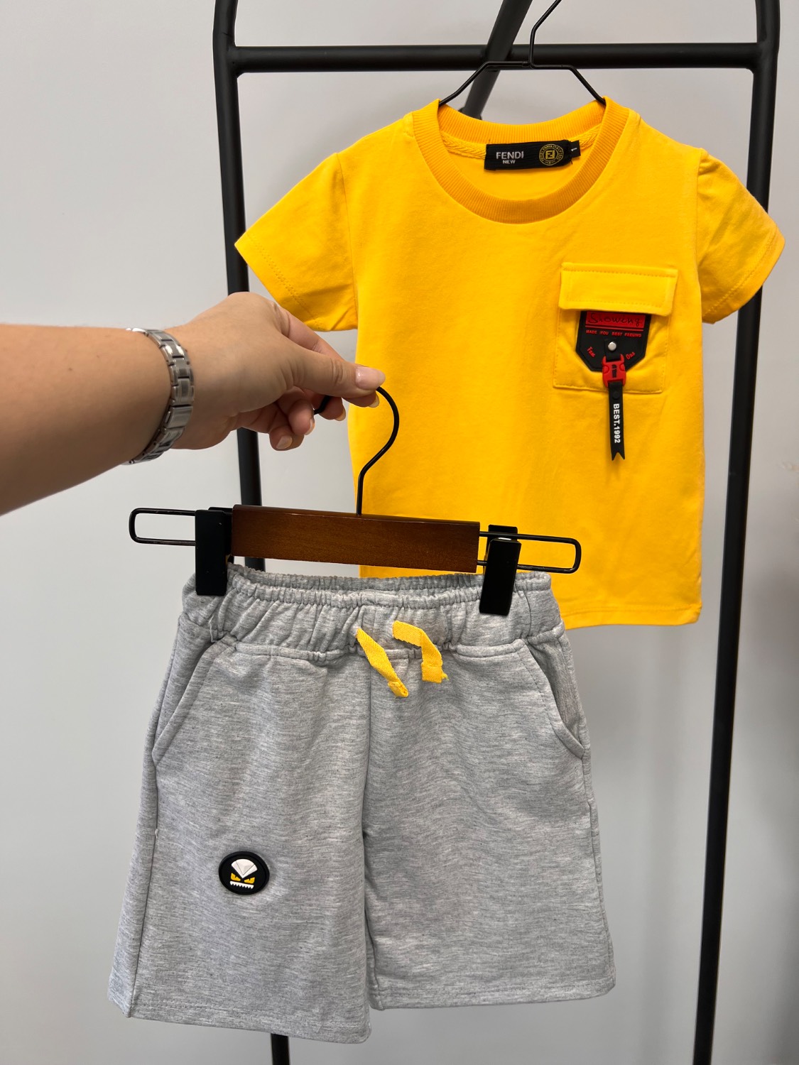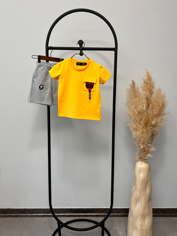 این ست پسرانه وارداتی شامل تیشرت آستینکوتاه زرد بههمراه شلوارک طوسی است که با طراحی اسپرت و رنگبندی جذاب، انتخابی مناسب برای استفاده روزانه کودک محسوب میشود. تیشرت از پارچه نخی نرم و خنک تهیه شده و دارای جیب تزئینی روی سینه با بند دکوری است که ظاهر لباس را خاص و ترندی کرده است. شلوارک با کمر کشی راحت و پارچه نخی ملانژ سبک طراحی شده و آزادی حرکت بالایی برای بازی و فعالیت کودک فراهم میکند. این ست با دوخت تمیز و کیفیت مناسب، گزینهای ایدهآل برای فصل بهار و تابستان است.
