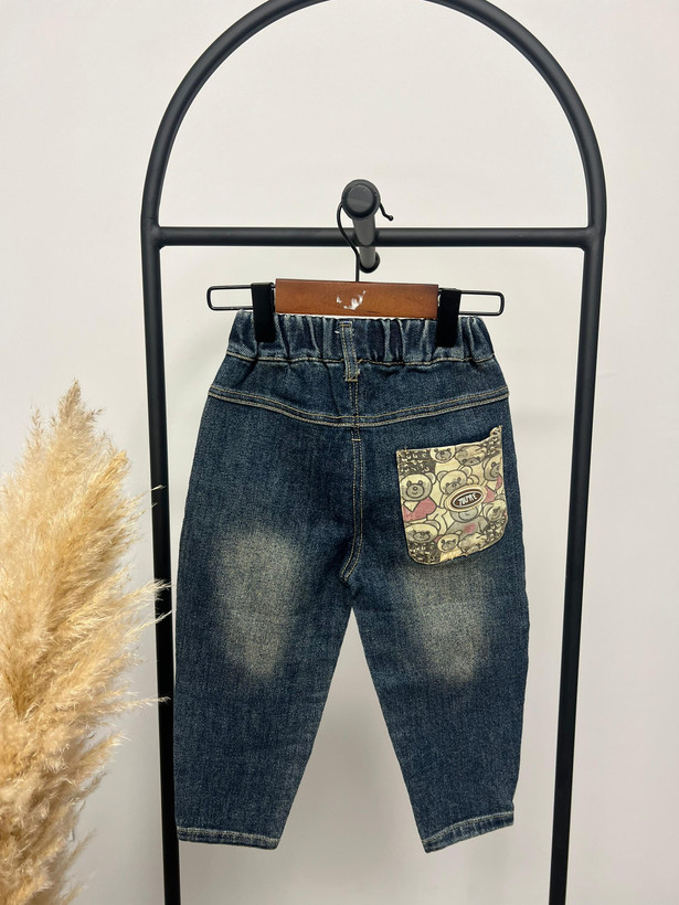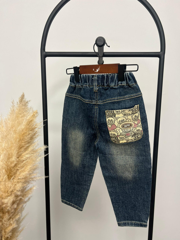 شلوار جین مام فیت نقلی محصول کشور چین ، بسیار با کیفیت مناسب استفاده در تمام فصول سال و استفاده روزمره میباشد. کمر شلوار کشی است و مناسب کودک دختر و پسر میباشد ، پشت شلوار دارای یک جیب با طرح خرس زیبا میباشد.