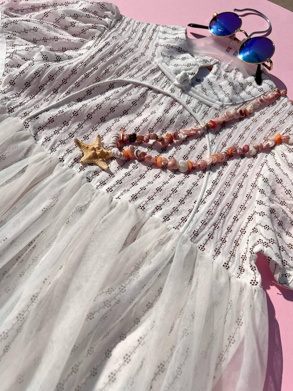 از این پیراهن هرچیبگم کم گفتم جنس:خنک و نازک طراحی خاص تنخور از قسمت کمر و دامن یک لایه تور دارد