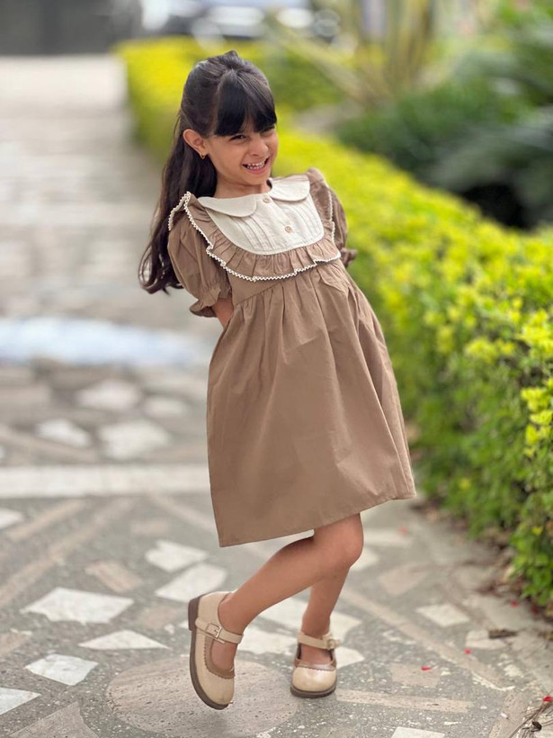 باورت نمیشه این پیراهن چقدر خوشاستایله! یه پیراهن قهوهای کرم وارداتی مخصوص دخترای بانمک . . . این رنگای Neutral خیلی راحت با هر لباسی ست میشن و استایل کوچولوت همیشه مرتبه! جنسش هم لطیف و باکیفیته که خیالت راحت باشه. مناسب مهمونی و بیرون رفتن، هم شیک هم راحت! . .