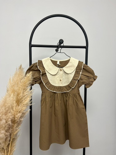 پیراهن دخترانه بهاره یقه تور دامن کلوش