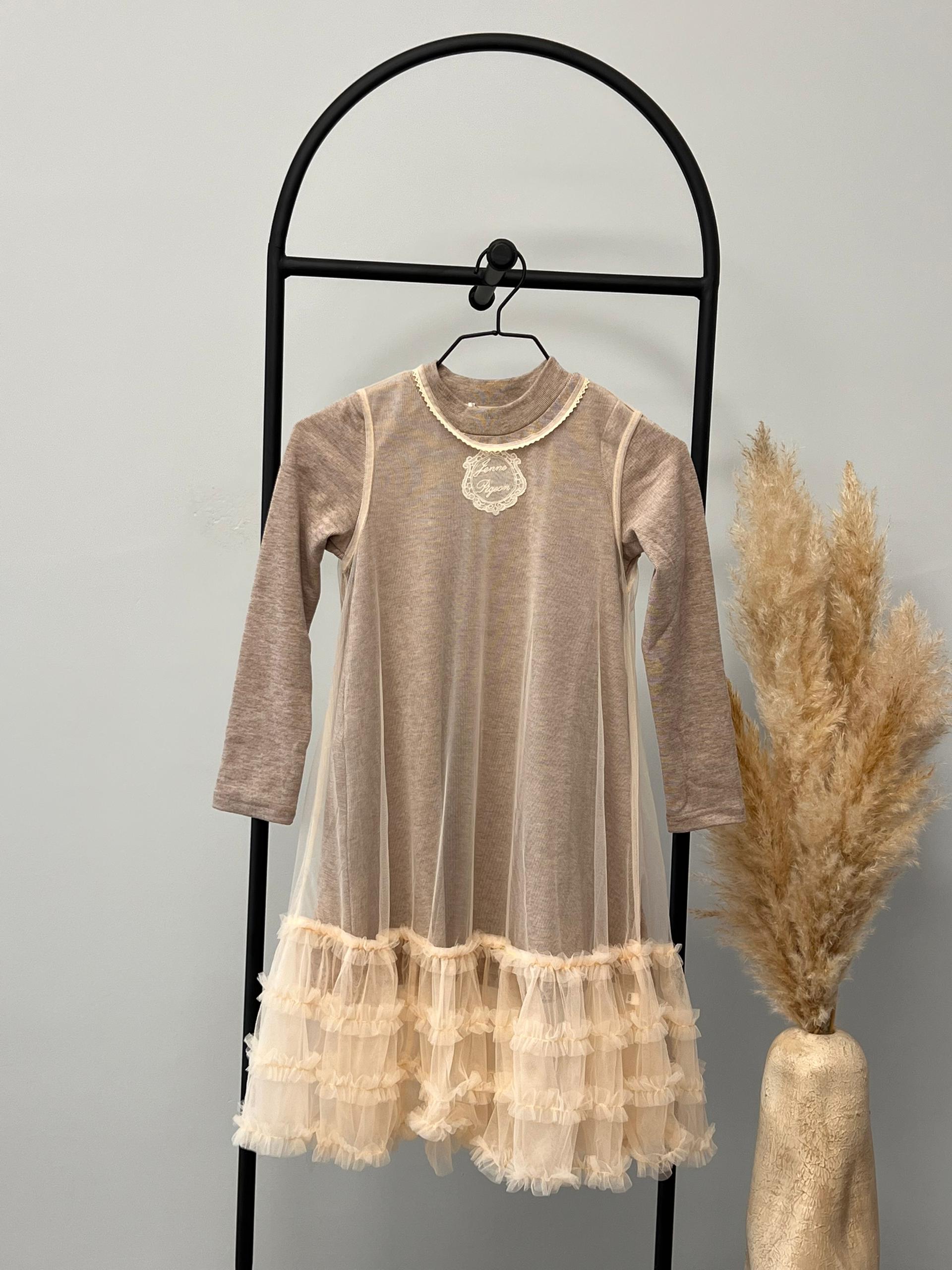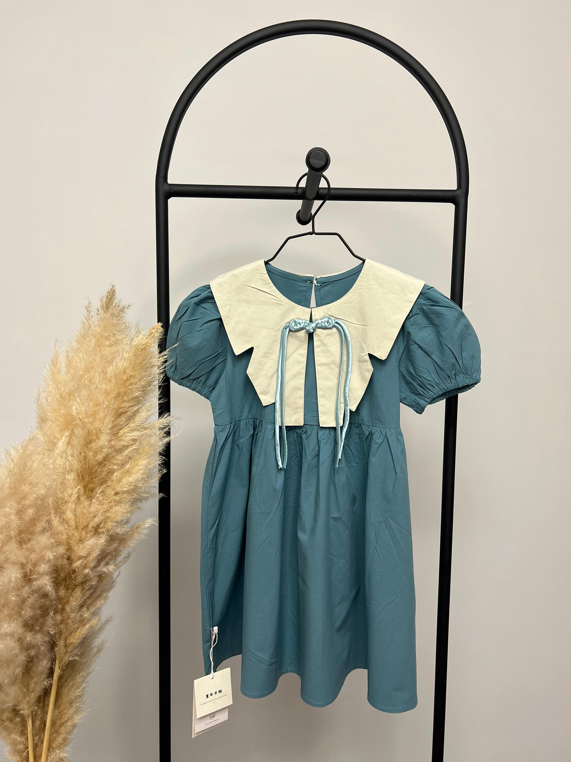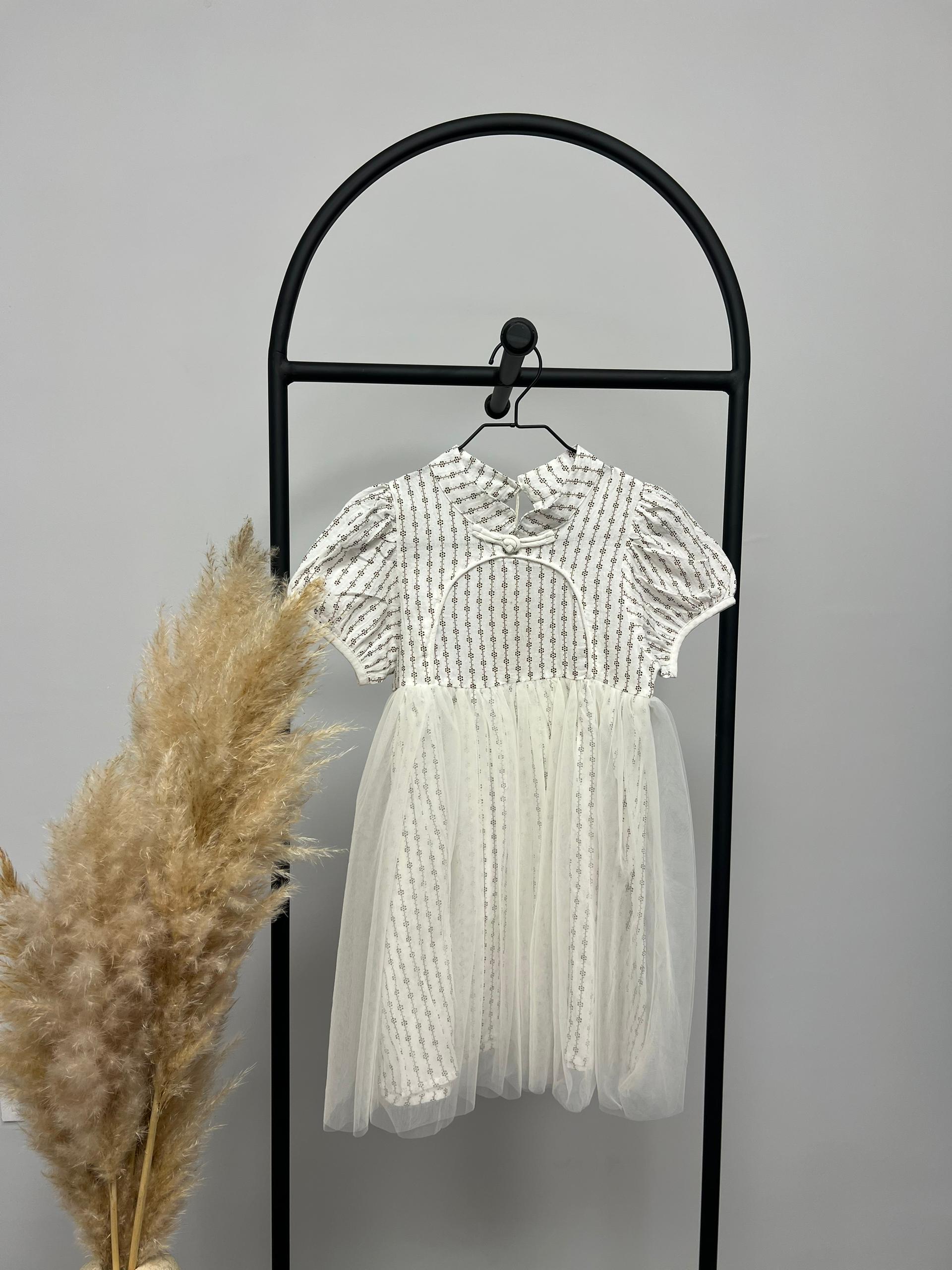 پیراهن دخترانه بهاره یقه تور دامن کلوش