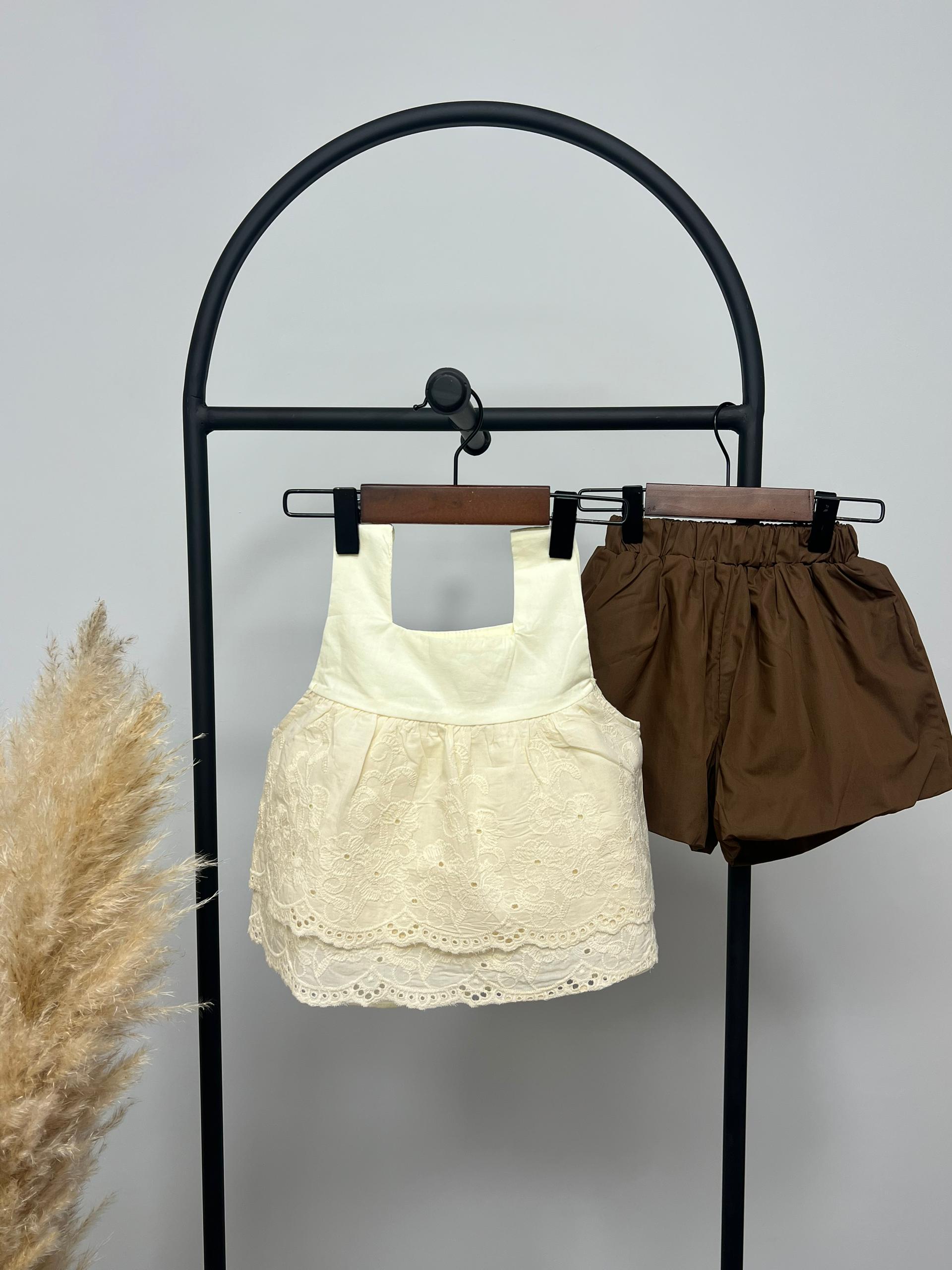 ست تاپ و شلوارک دخترانه وارداتی خامه دوزی